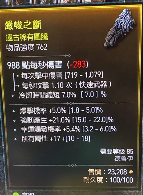 標題[競標] D4 風德副手 頂暴率 幸運 全屬性