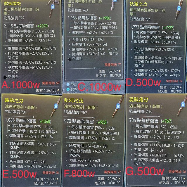 標題[交易] D4 7-80級 三對弩/雙槌/單劍 千萬內
