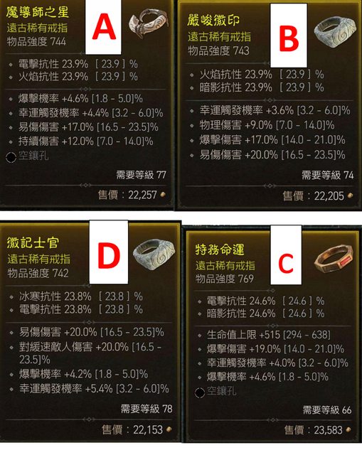 標題D4 賣 爆率/爆傷/易傷/幸運觸發 4中3黃戒