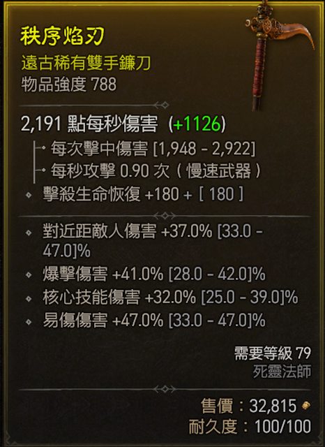標題[競標] 788死靈雙手鐮刀 頂易傷/頂爆傷/核心傷