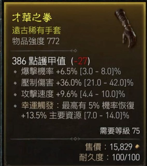 賣75等需求的手套與魔杖,賺點錢準備洗裝備,