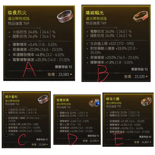 [交易] D4 出售幾顆 易傷/爆擊/幸運/生命 戒指