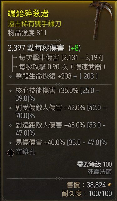 雙手鐮刀 物品強度 811 LV100