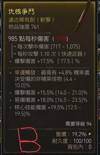 賣易爆傷戒指、三減免褲子跟易爆傷單手劍 各850萬暗黑幣