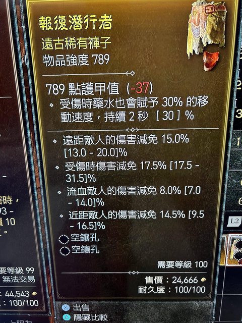 物 品:褲子 4減傷詞條