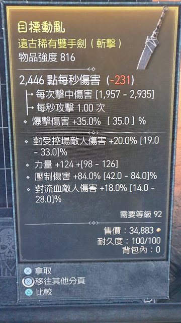 爆率,力量,全屬,受傷暴率 屬性漂亮幫你省錢撐著找裝備 價格300萬 (沒注意到是神聖QQ) https://i.imgur.com/YNaiGwf.jpg