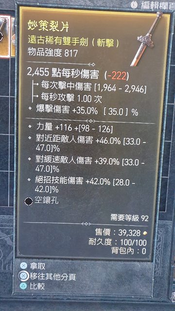 高面板雙手劍 數值800以上 都只賣600萬 https://i.imgur.com/j0LcDu8.jpg