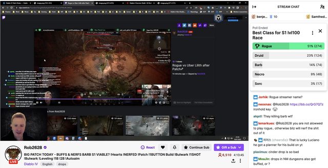 然後昨天 Patch 之後 Rob 在直播間投票看大家想要玩什麼 果不其然 大部分人都想要俠盜拓荒 之後看風向再帶小號 https://i.imgur.com/tN5Fl9W.jpg