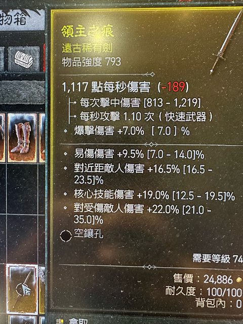 3.793單手劍 易傷 近距離傷 核心傷 :500w