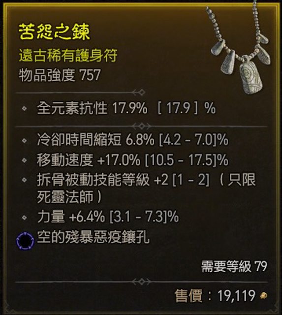 標題[競標] D4 S1賽季 死靈項鍊 拆骨+2/跑速/冷卻
