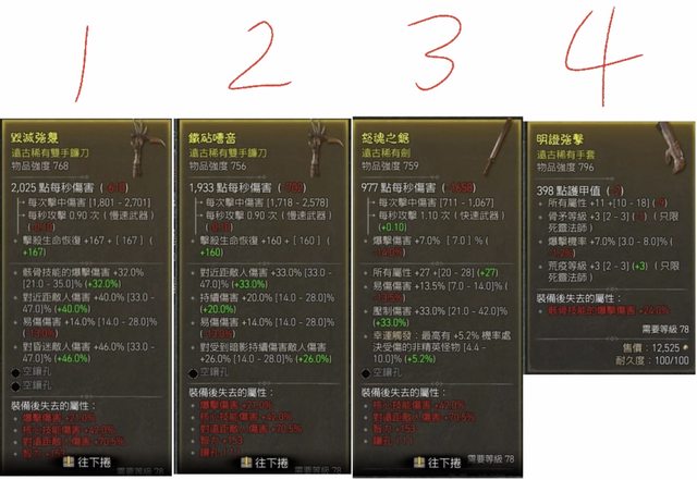 號碼下面對應裝備