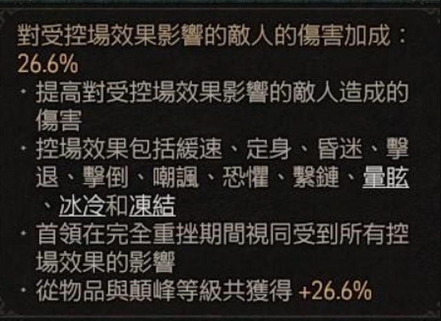 擊中受控場效果影響的敵人時,最高有 [30 – 50]% 機率將該控場效果擴散到其他未受