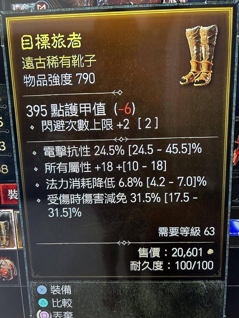 物 品:D4 賽季 鞋子 頂全屬/法力消耗/受傷減免