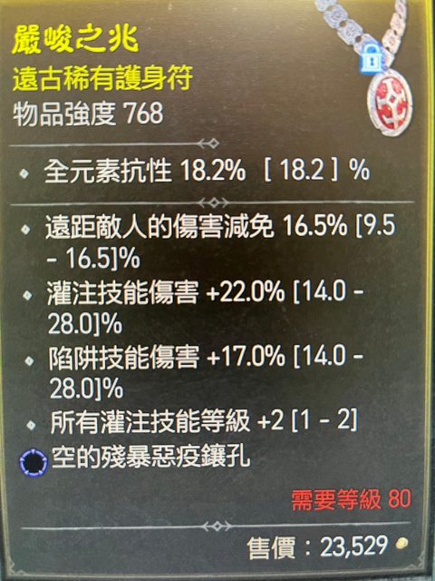 頂遠距減傷/灌注技能傷/陷阱技能傷/所有灌注技能+2