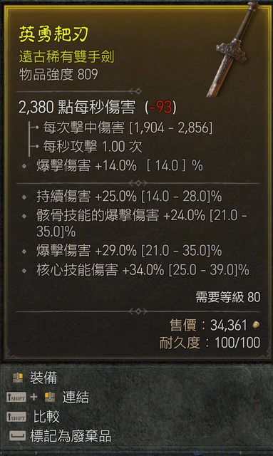 標題[交易] D4 賽季一 死靈 骨矛用雙手劍