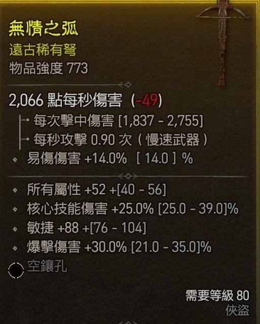 物 品:俠盜弩 所有屬性+52 核心技能+25%
