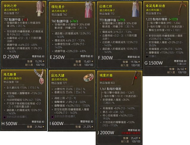 各種防禦褲子 項鍊戒指 816死靈鐮刀 德魯伊武器
