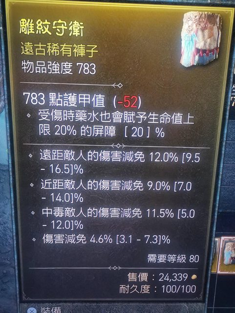 遠減12%、近減9%、毒傷減11.5%、傷害減免4.6%