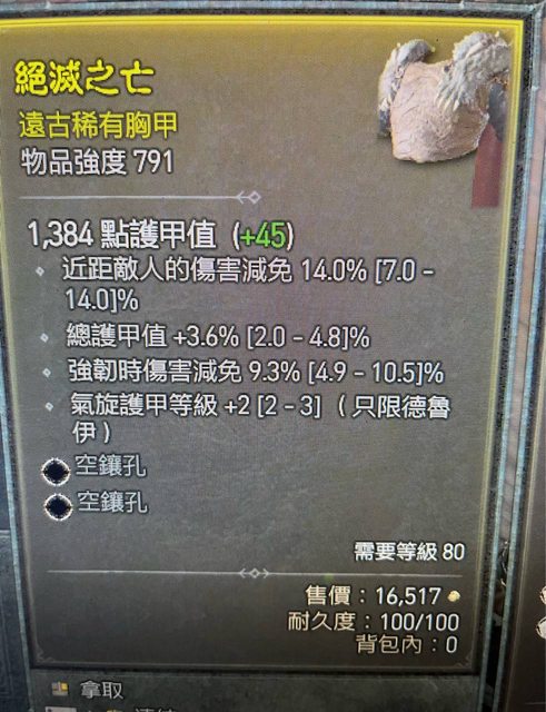 標題[競標] D4 S1 護甲強韌頂近減胸甲