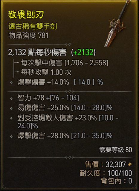 標題[競標] 死靈雙手劍 易傷 爆傷 智力 控場傷