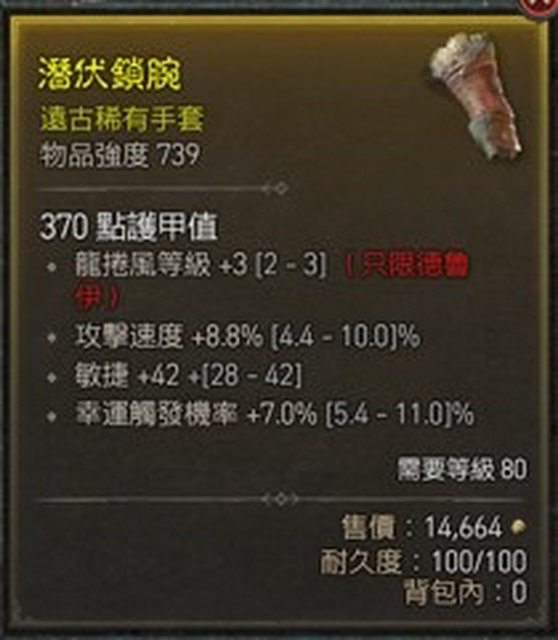物 品:風德手套 近頂攻速 幸運 龍捲風
