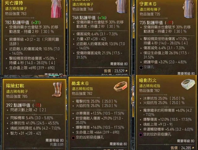 賣以下死靈裝備 皆已標上價格