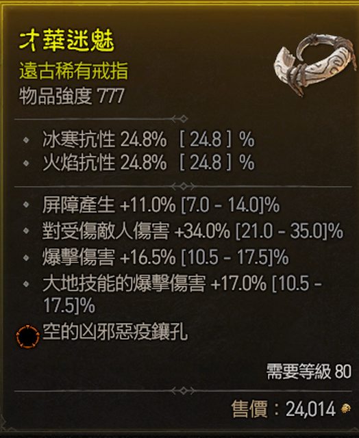 標題[競標] D4 S1 戒指 屏障/爆傷/大地爆