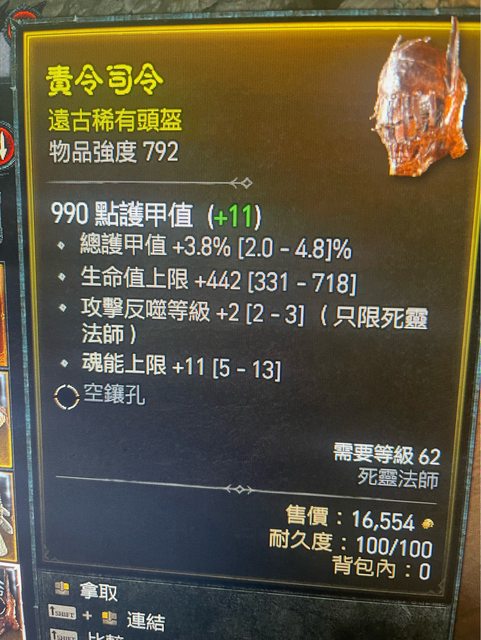 標題[競標] D4 s1 死靈魂能頭 血 甲