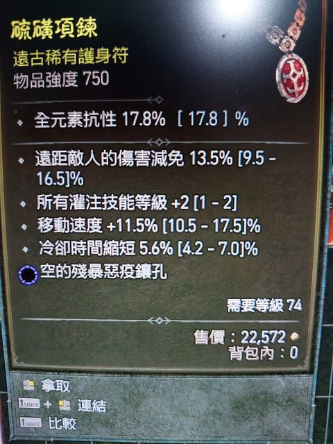 標題[競標] D4 賽季 俠盜項鍊 灌注2跑速遠減CDR