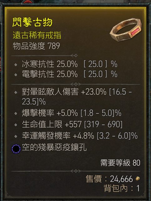 標題[競標] D4S1 戒指 爆率 生命 幸運觸發