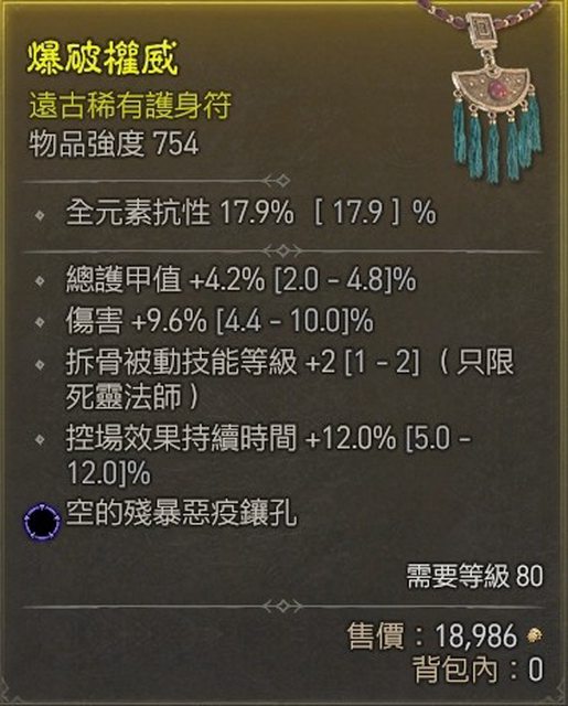 標題[競標] D4 S1 死靈拆骨被動2藍項鍊