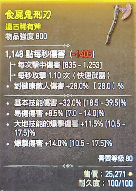 標題[競標] D4 S1 800單手斧 易傷 爆傷 大地爆傷
