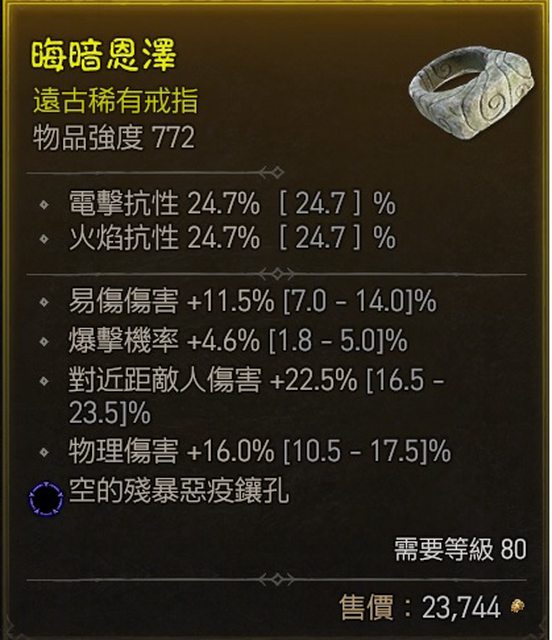 標題[競標] D4 S1 戒指 近頂爆率/物理/近戰傷 高易傷