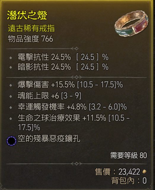 標題[競標] D4 S1 戒指 暴傷/魂能/幸運 藍孔