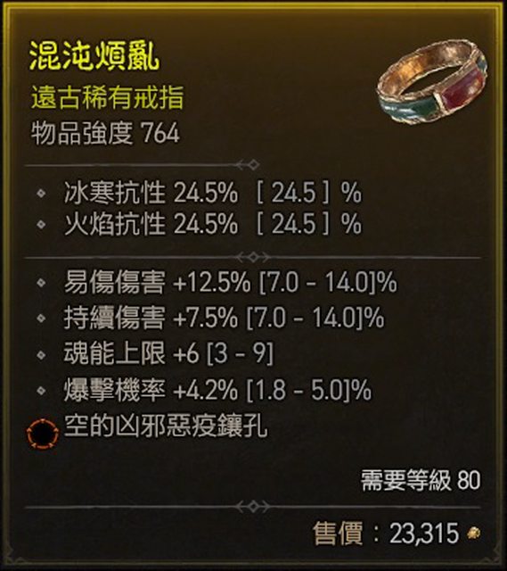 標題[競標] D4 S1戒指 爆率/易傷/魂能 兇邪