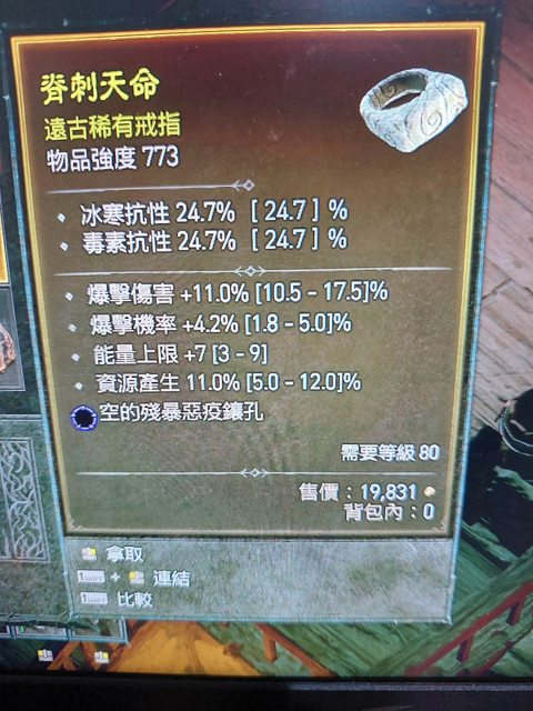 標題[競標] D4 S1 高資源爆率 爆傷藍孔戒指