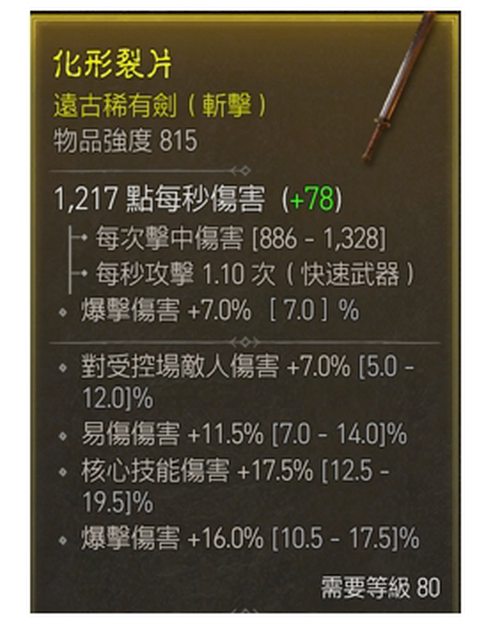 物 品:815 單手劍 爆傷/易傷/核心