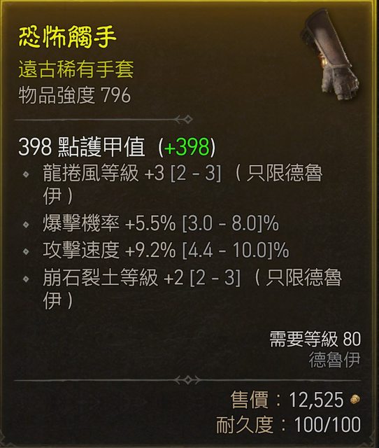 標題[競標] D4 S1 山風狼手套 爆率攻速龍捲+3崩石+2