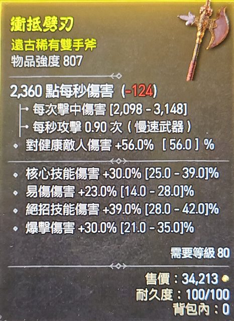 標題[競標] D4 S1 雙手斧807 核心傷 易傷 暴傷