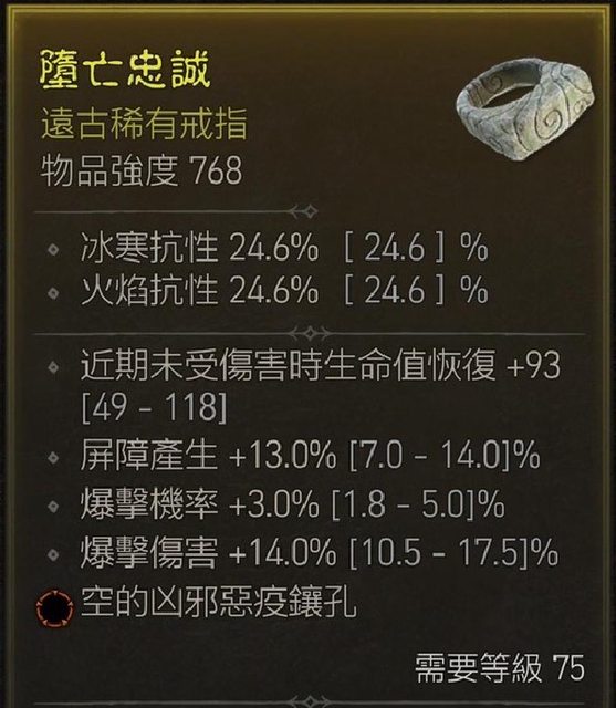 物 品:近頂炸盾德戒 爆傷/率/屏障 兇邪孔
