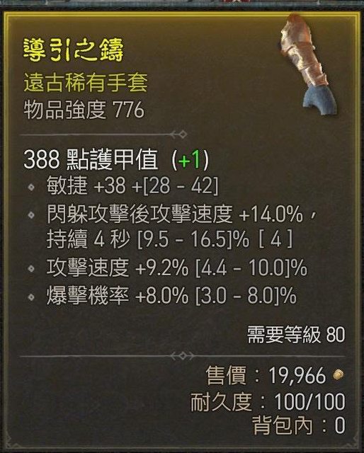 物 品:D4 S1 炸盾手頂爆高攻速迴避加攻
