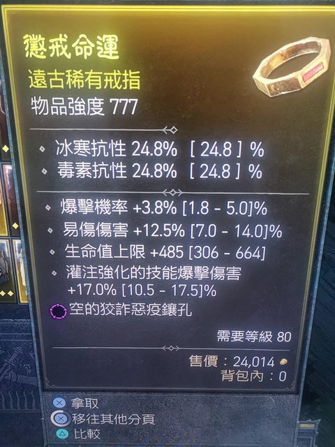 標題[競標] D4 S1 戒指 易傷/爆率/生命