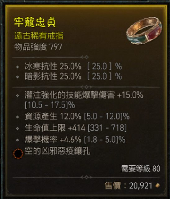 爆率4.6%/資源產生12%/生命414/灌注爆傷15%