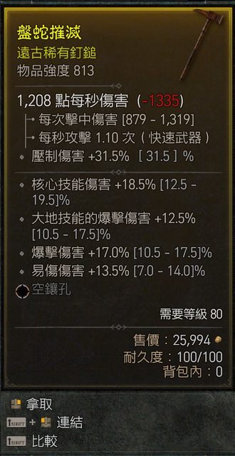 標題[競標] D4S1 813單手槌 近頂爆傷/易傷/核心傷