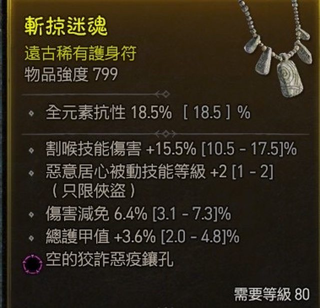 標題[競標] D4賽季 俠盜項鍊惡意 護甲 減免
