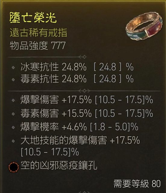 標題[競標] D4 s1 戒指 爆傷/暴率/大地 快頂到底