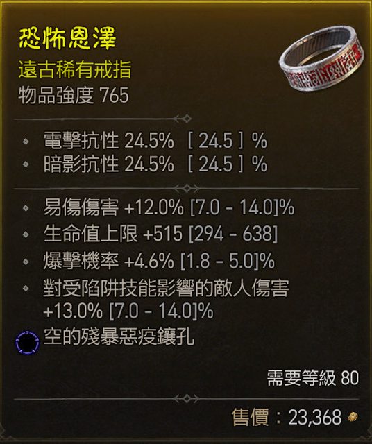 物 品:D4 S1 炸盾戒 高易傷/高生命/高爆率