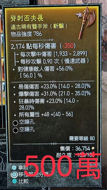 賣賽季野蠻武器、戒指、護身符 暗黑幣標價皆附在圖上
