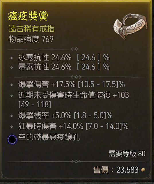 標題[競標] D4 S1 戒指,爆率/爆傷滿,狂暴傷害滿