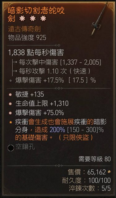 物 品:三太古單手劍(敏/生命/爆傷)